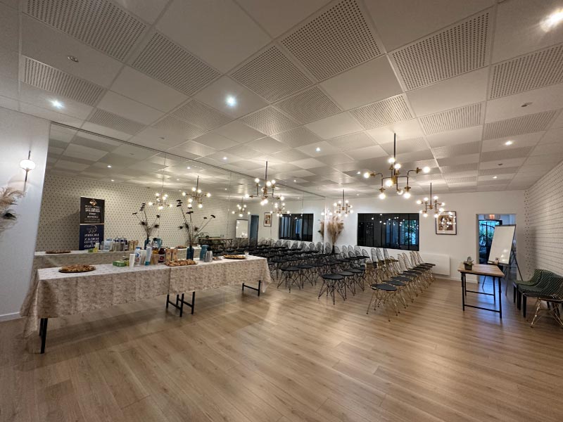 - Location à la journée: Notre grande salle de réunion, pouvant accueillir jusqu’à 30 personnes, est disponible à la location pour 200 € par journée. Elle est équipée de toutes les installations audiovisuelles nécessaires et offre un cadre professionnel pour vos réunions, présentations et événements spéciaux.