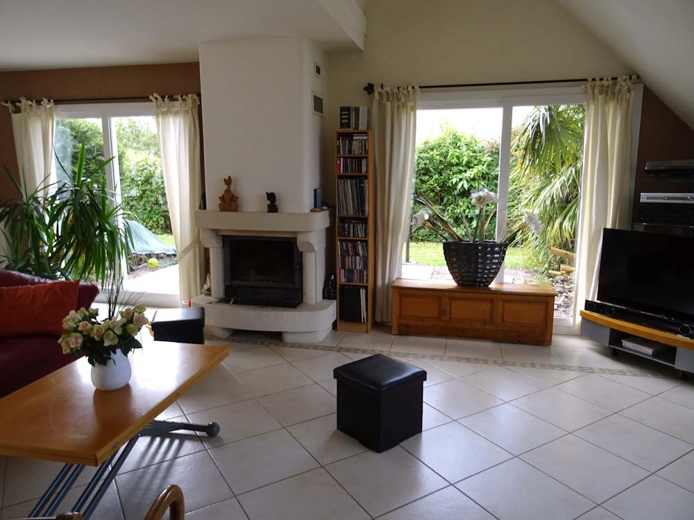 Offrant, au RDC : séjour, cuisine ouverte américaine, pièce à vivre de 85 m2 avec cheminée, 2 chambres séparées d’une SDE, WC